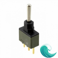 - Описание:Тумблеры Process Sealed Mini Toggle Switch, 1P, SPDT, (ON)OFF(ON), 0.3" bat lever, 0.4VA 28VAC/DC, Straight PC terminal